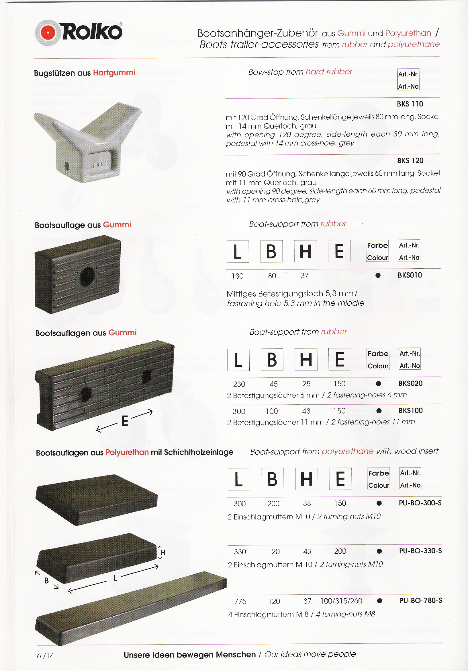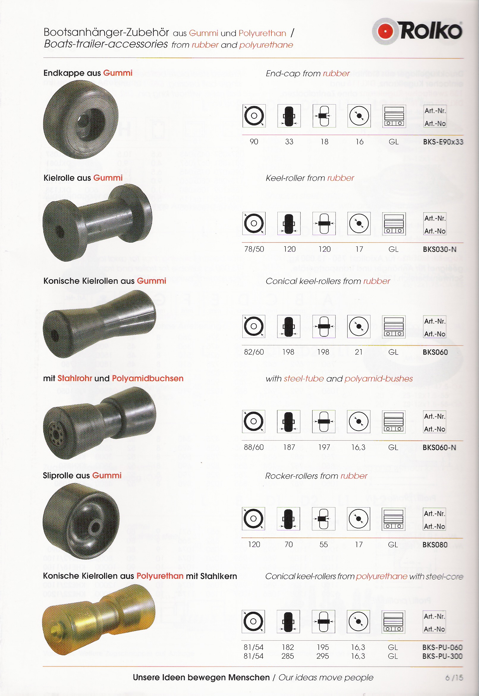 Kielrolle Polyurethan, Stoltz RP8, mit Stahlkern, Breiten in 195/295 mm, Achse 16,3 mm Bugstützen und Bootsauflagen